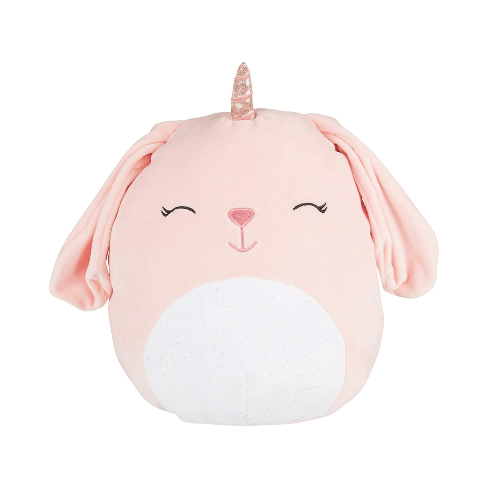 Legacy the Bunnycorn! With a gold unicorn horn and a pink speckled tummy, this 12-inch plush is irresistible. So, why settle for a boring old stuffed animal when you could have the lovable character and unique Squishmallows by your side?