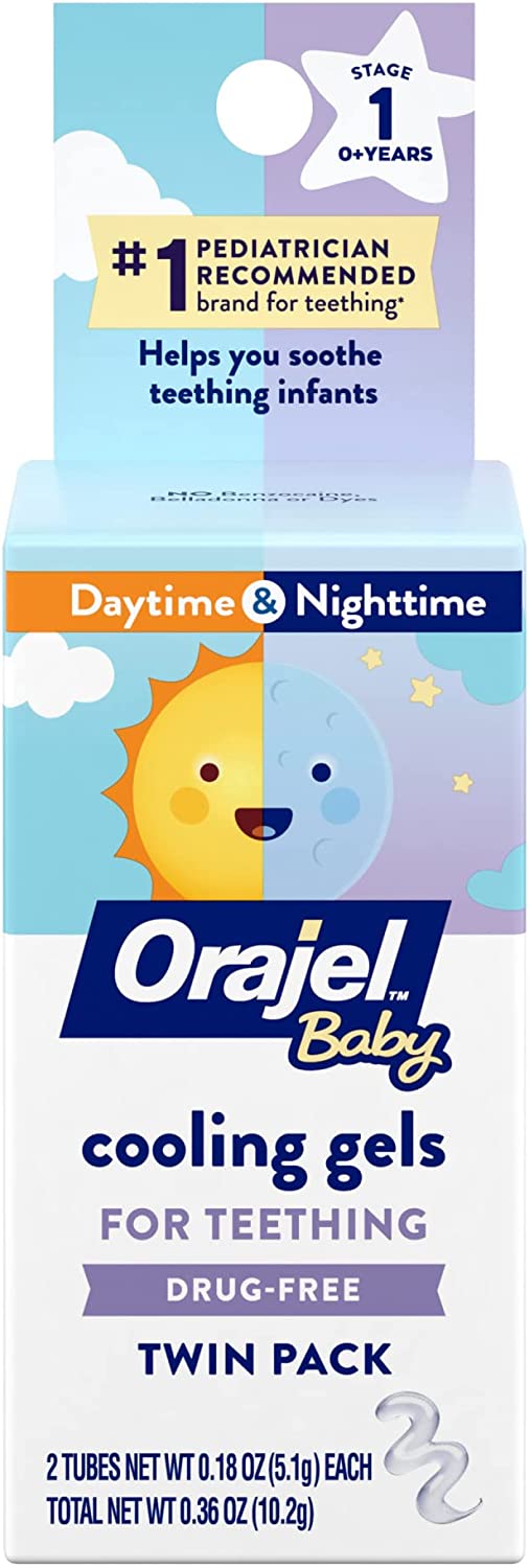 Orajel Baby Daytime and Nighttime Cooling Gels are clinically proven to help soothe teething discomfort. Designed for babies ages 0+ months, Orajel's soothing formula is drug-free and pediatrician-recommended.