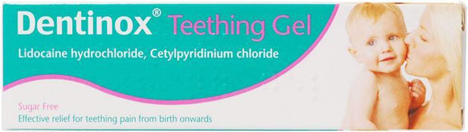 Dentinox Teething Gel is the only brand of teething gel that has been clinically proven to help relieve your baby's teeth pain. Dentinox contains Benzocaine, which relieves temporary pain by numbing the area and will not cause harm if swallowed. Gum pain and swelling are reduced quickly, and your baby will be back to their happy self in no time.